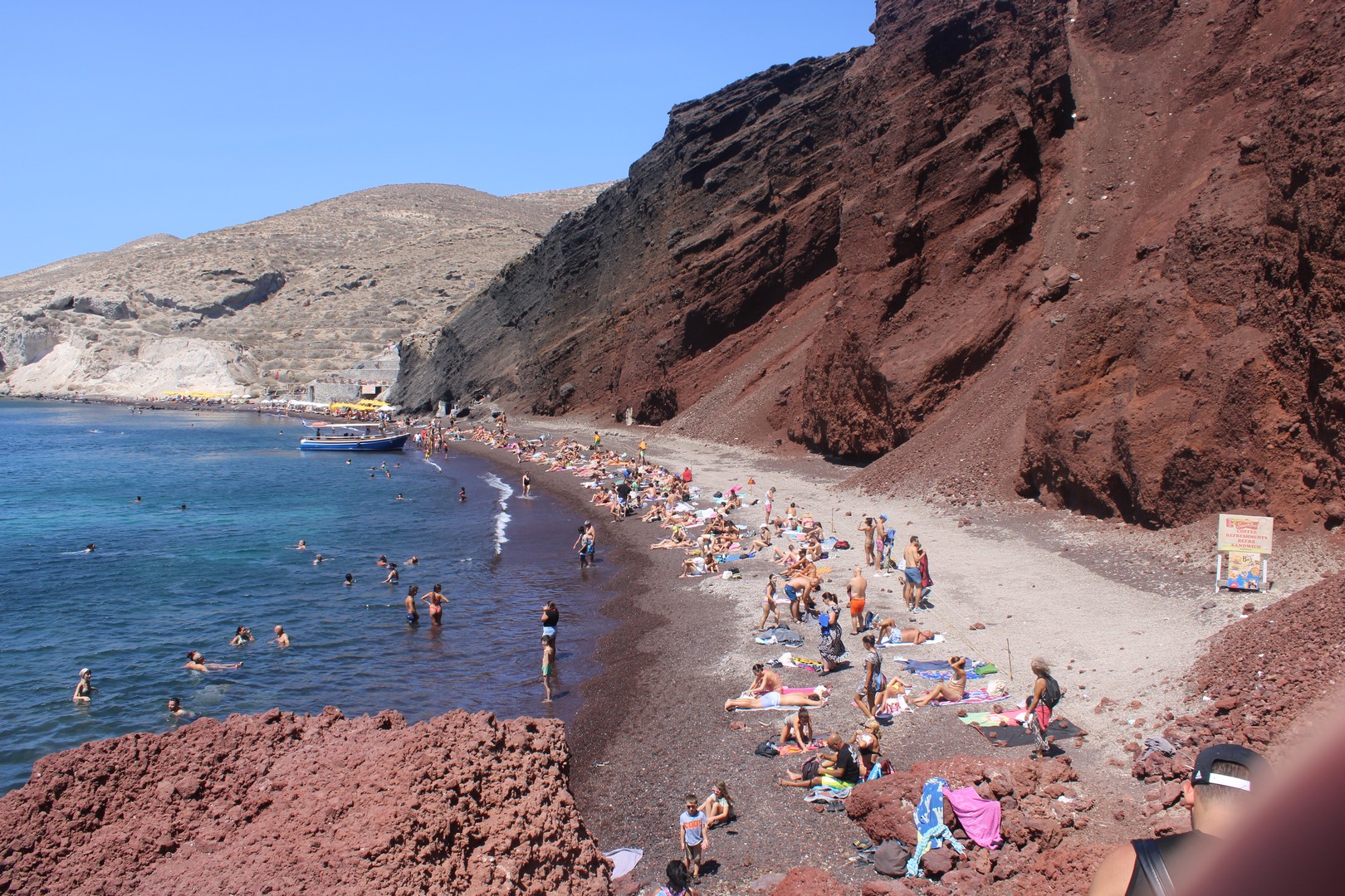 While you sail past the Red and White beaches, our crew prepares a variety of freshly made local delicacies and serves refreshing drinks, allowing you to savor the tastes of Greece as you take in the stunning volcanic landscapes.